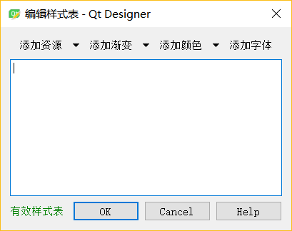 QDesigner中编辑样式表,如下图所示,可以及时验证所写QSS格式是否正确。这个功能是QtGui的内部功能,并未放开。我们可直接包含其头文件,使用其方法。